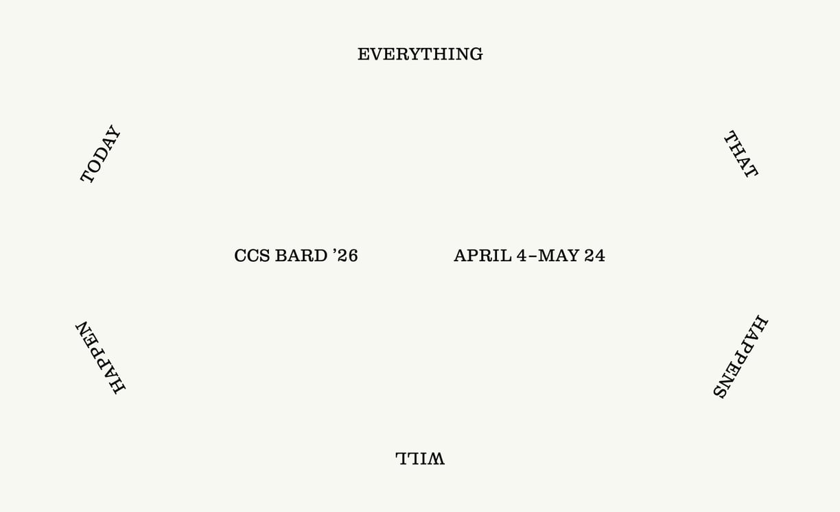 Everything That Happens Will Happen Today collects curatorial projects organized by the Class of 2026 at the Center for Curatorial Studies, Bard College, in fulfillment of their M.A. in Curatorial Studies. From solo exhibitions that revisit and reinvigorate historical legacies to group shows that foreground contemporary practices, the projects span diverse disciplines, time periods, and materials.